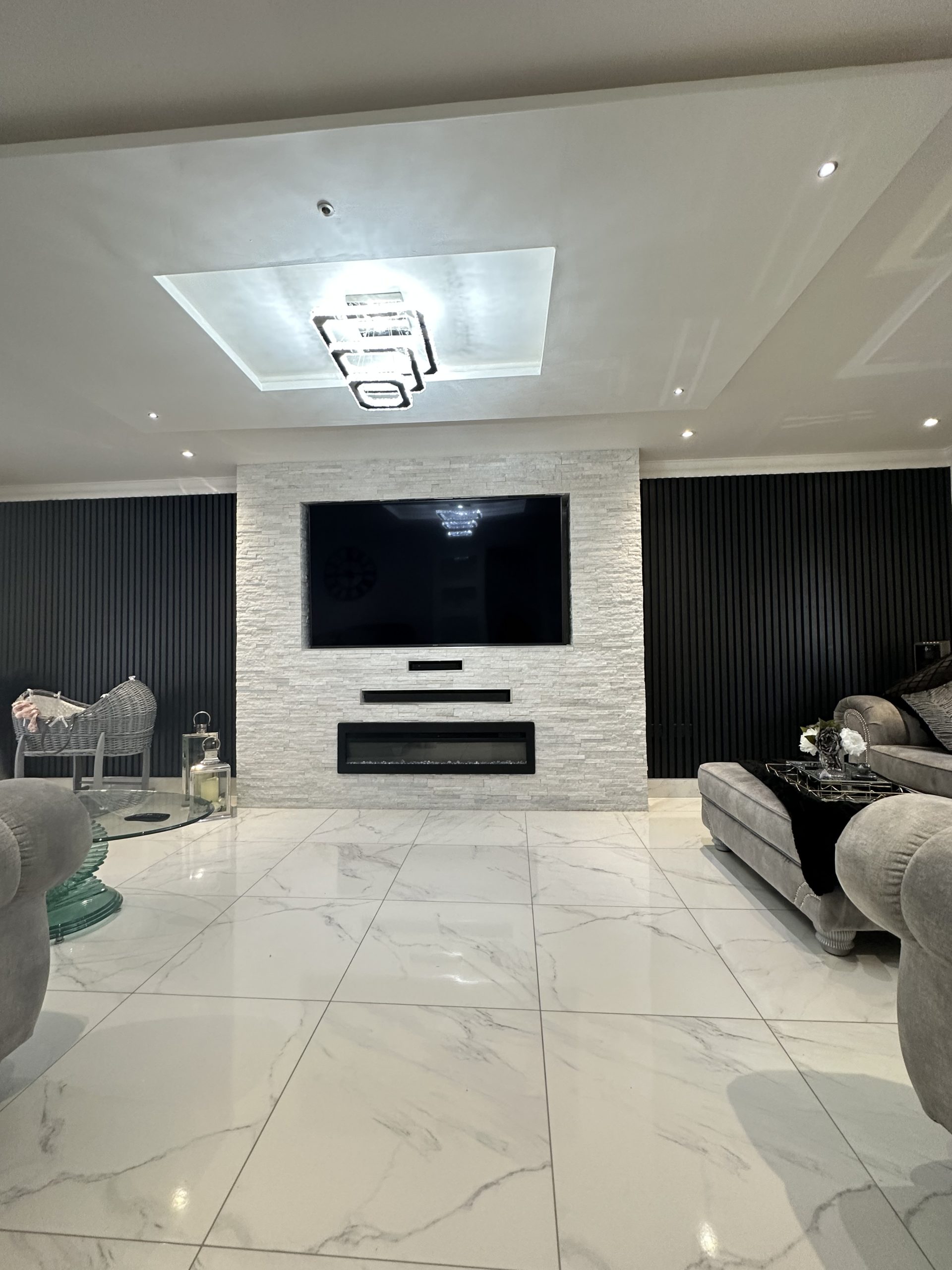 - Spacious and well-lit living area with comfortable seating and a large flat-screen TV.